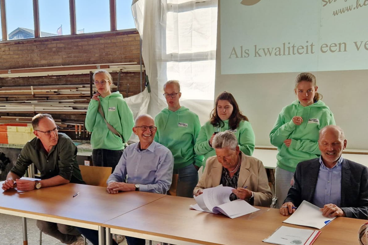 Samen met de Elisabeth Stichting werd op donderdag 23 april de samenwerkingsovereenkomst ondertekend bij aannemer Hooghwerff. Dat gebeurde in de werkplaats van de aannemer en voelt als een grote stap richting een eigen thuis voor de jongeren die er gaan wonen en hun ouders.