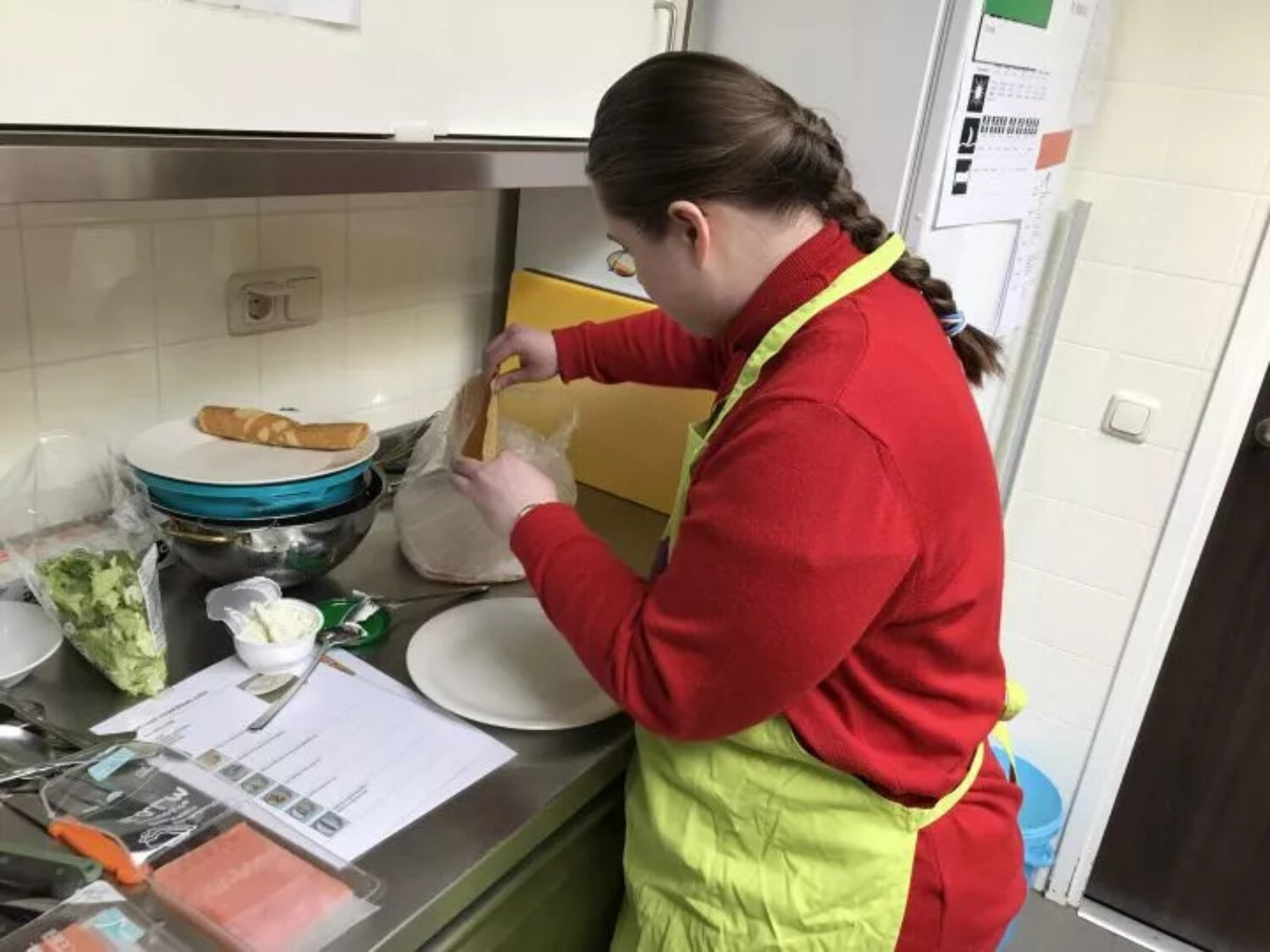 Op de foto’s zijn bewoners van Cavent bezig met de voorbereidingen van recepten uit het kookboek.